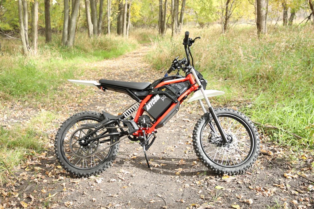 At first glance, it looks like a full-on electric dirt bike: red steel frame, big knobby tires, aggressive stance. But then you notice something weird — there’s a spot for pedals.