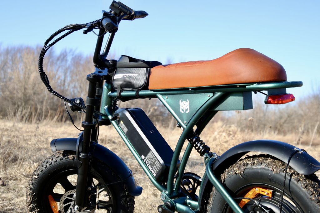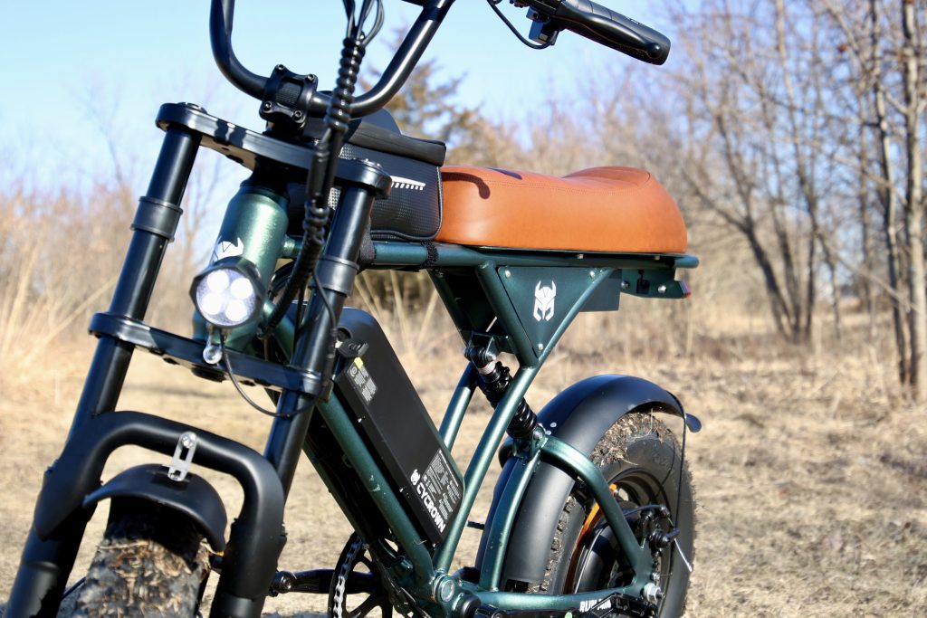 Well, Cycrown decided to make a mini version of the Run. It has the same 36V battery and stylish frame, just in a smaller 16″ wheel package instead of 20″. The seat height on the mini is just over 32in, where the full sized Run is 35in.
