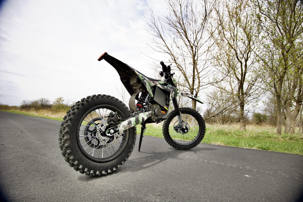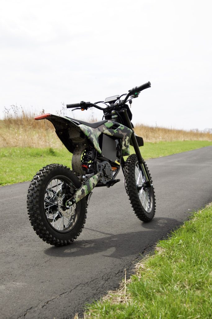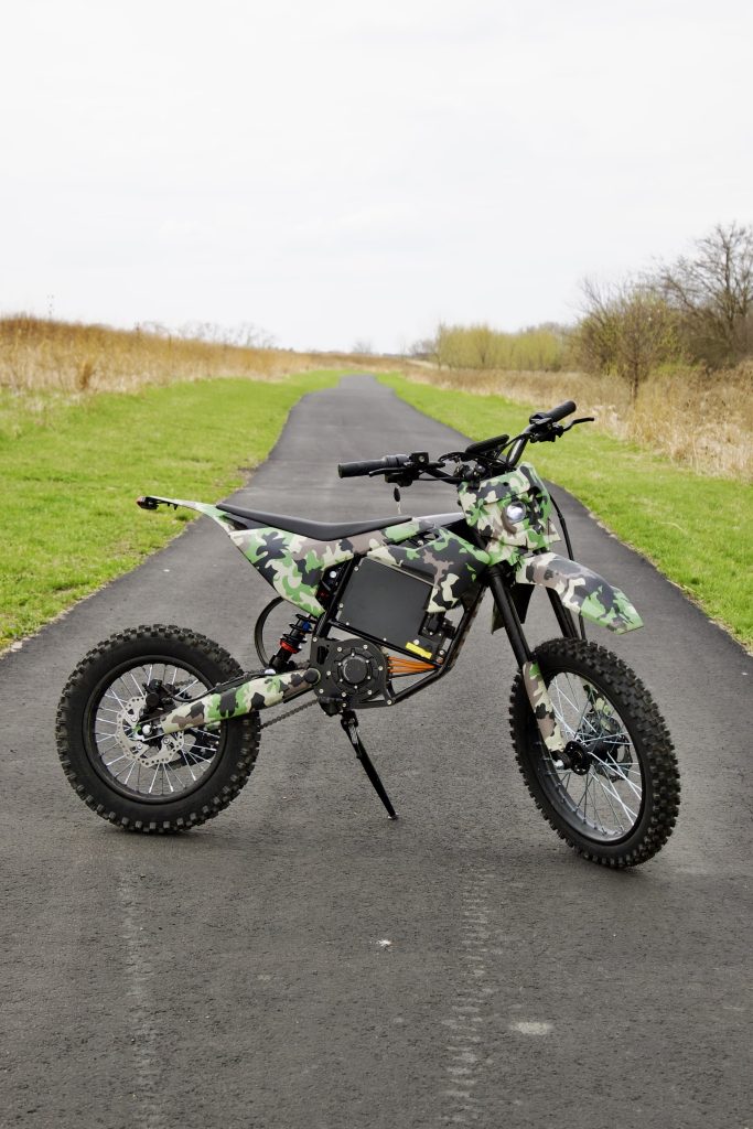 The camo bodywork also grew on me fast. In the studio it looked a little “eh, maybe,” but outside it actually works. It blends into the off-road vibe nicely and gives the bike a different personality than the usual black-and-red budget e-moto look. As of writing, Leonx currently only lists that camouflage finish on the product page, so there’s not a choice of color currently.